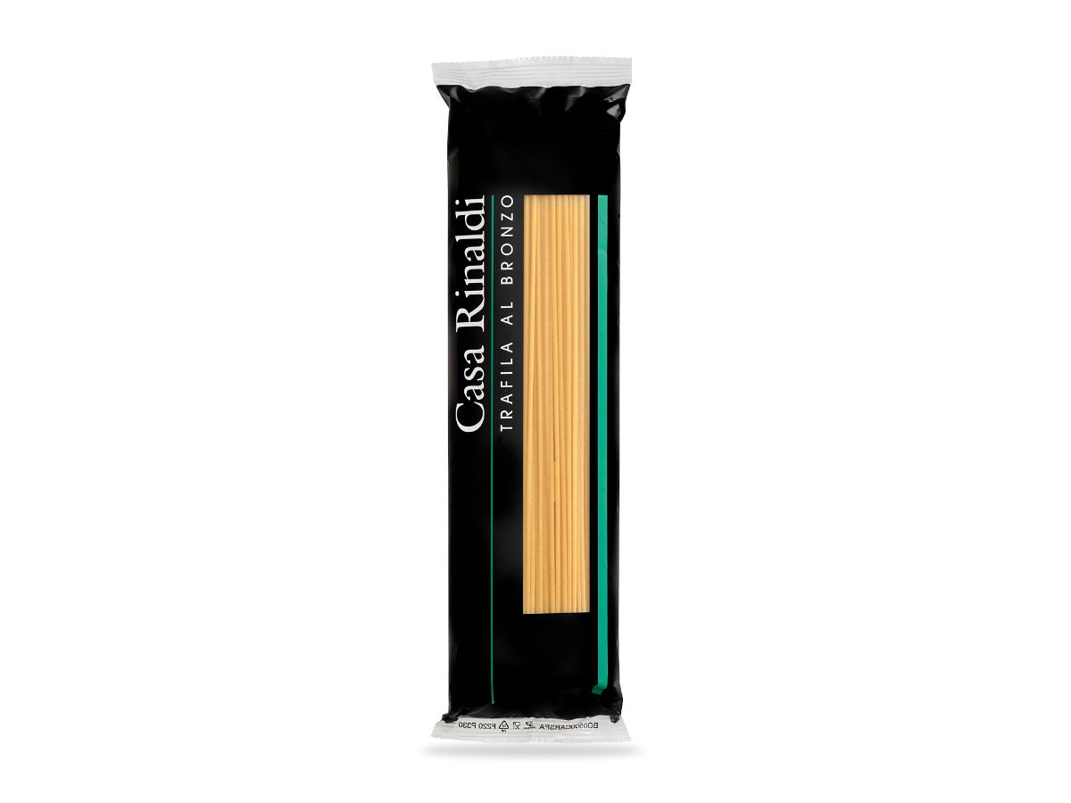 Spaghettini n. 205 by Casa Rinaldi recall handmade pasta thanks to their clear and bronze-died surface.  They are thinner than spaghetti and keep their structure intact after cooking. We recommend cooking the spaghetti in boiling salted water following the box indications and adding one of the sauces from our selection (we recommend carbonara or amatriciana).