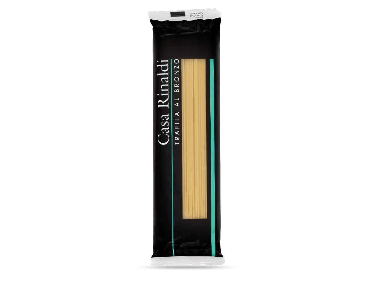 Spaghetti n. 572 by Casa Rinaldi recall handmade pasta thanks to their clear and bronze-died surface. Their smell is delicate, as is their taste. Spaghetti is one of the most popular pasta shapes in the world. The spaghetti must be cooked in boiling salted water following the box indications and seasoned with one of the sauces from our selection (we recommend carbonara or amatriciana).