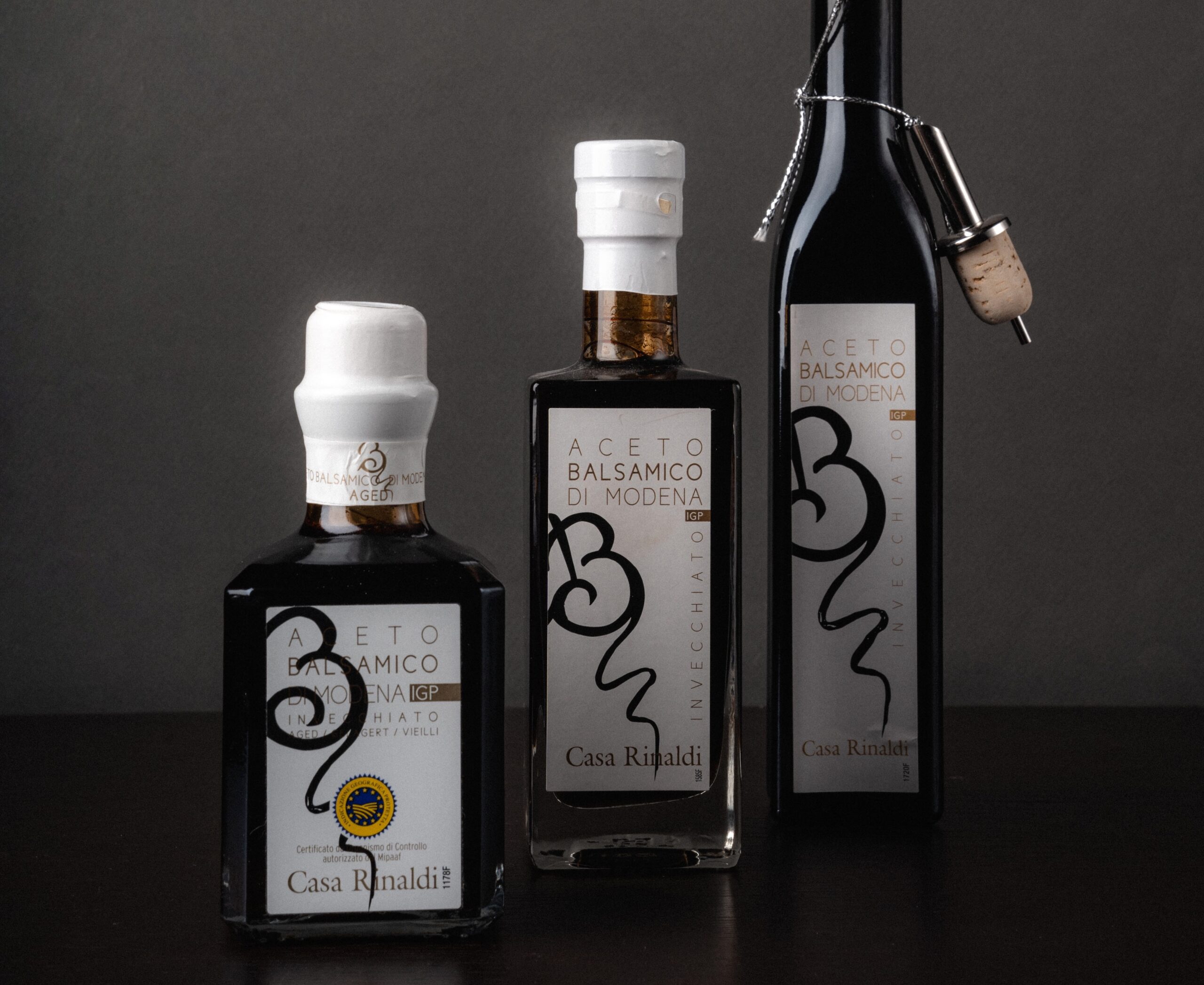 Queste caratteristiche hanno spinto Casa Rinaldi a sviluppare una linea dedicata, nella quale i singoli ABM si differenziano per il formato della bottiglia, la densità del condimento, che varia da 1.30 e 1.34, e il packaging del prodotto.