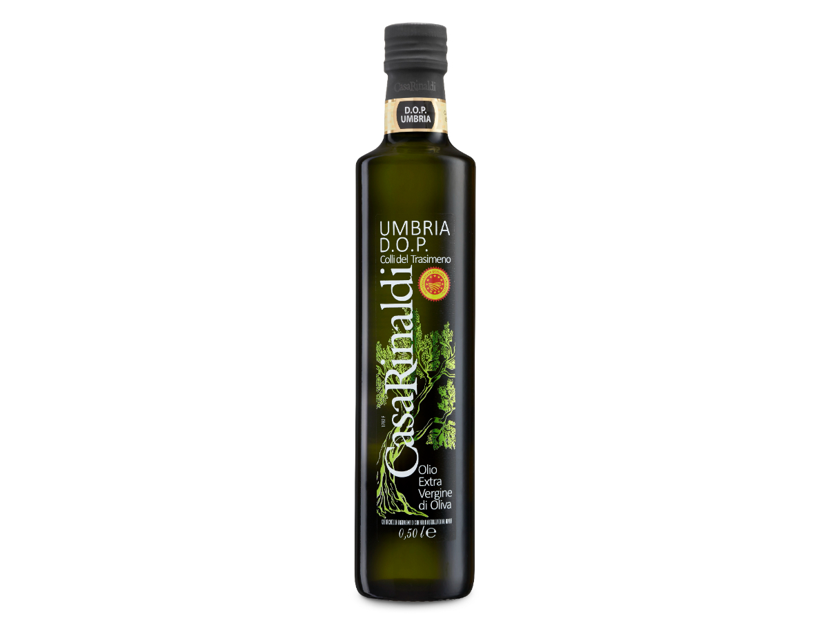 L’olio extravergine di oliva Umbria DOP Colli del Trasimeno di Casa Rinaldi è estratto dalle olive provenienti esclusivamente da questa magnifica zona dell’Italia centrale. Il suo profumo fruttato è medio leggero, con sentori di erba fresca, carciofo e cicoria. Il sapore ha una vena delicata e armonica, arricchita da un particolare retrogusto di mandorla.  In cucina, l’olio EVO Umbria DOP Colli del Trasimeno di Casa Rinaldi si abbina perfettamente con carpacci di carne, legumi, zuppe di verdure.