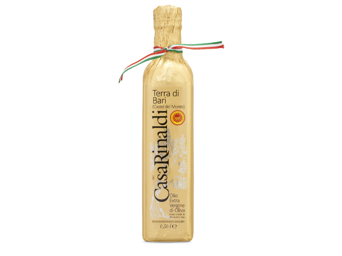 Il nostro olio extravergine di oliva DOP Terra di Bari è un'eccellenza regionale assoluta della Puglia, estratto da una particolare varietà di olive Coratina di Castel Del Monte. L'olio extravergine di oliva Terra di Bari DOP si presenta di colore verde brillante arricchito da intense sfumature gialle. Ha un profumo fruttato e intenso, mentre all’assaggio presenta sensazioni di amaro e piccante. Questo olio EVO è l’ideale per piatti dal gusto deciso, nonché accompagnato a legumi, ragù di carne, arrosti, carne al forno, verdure cotte e insalate, piatti di pesce, insalate e crostacei.