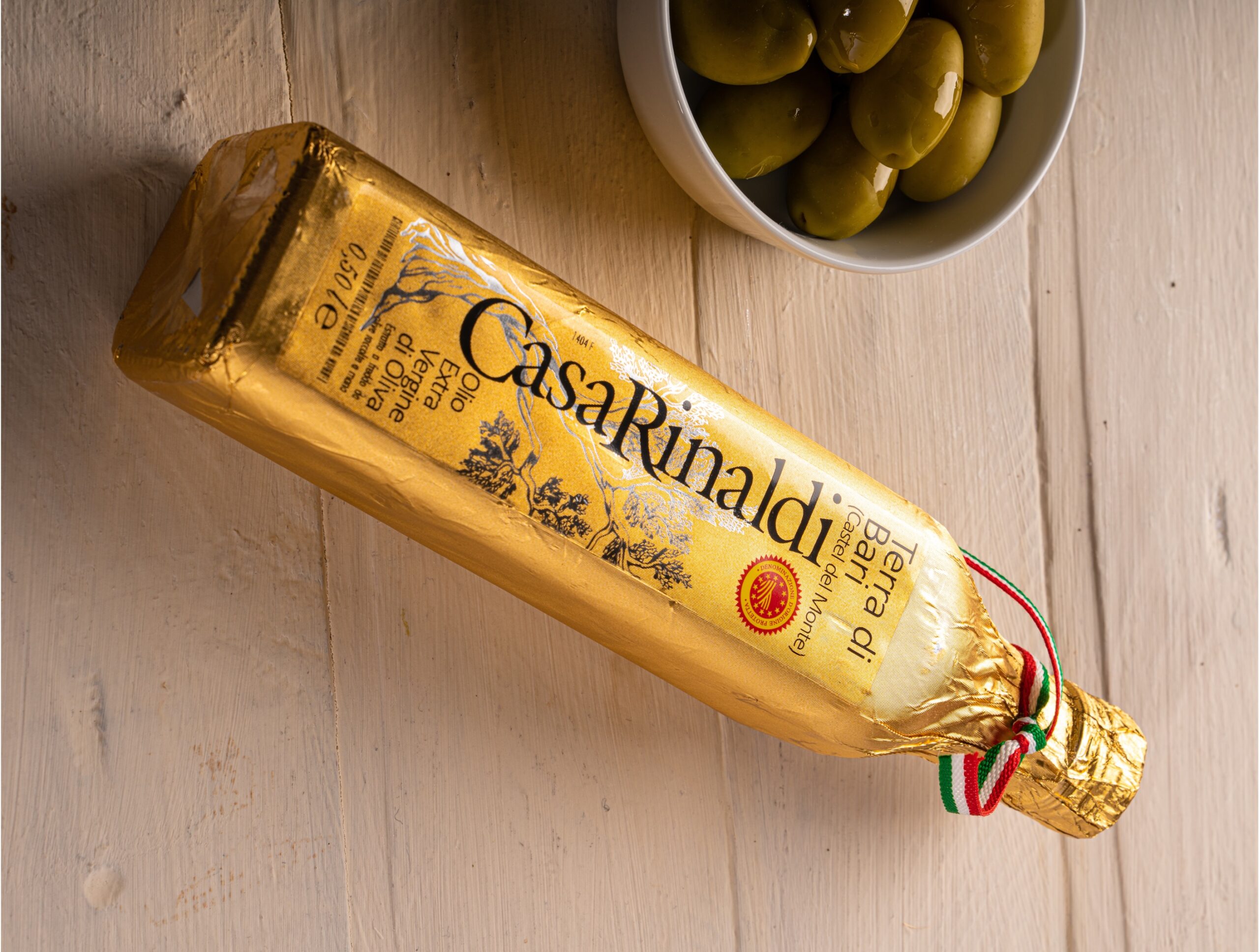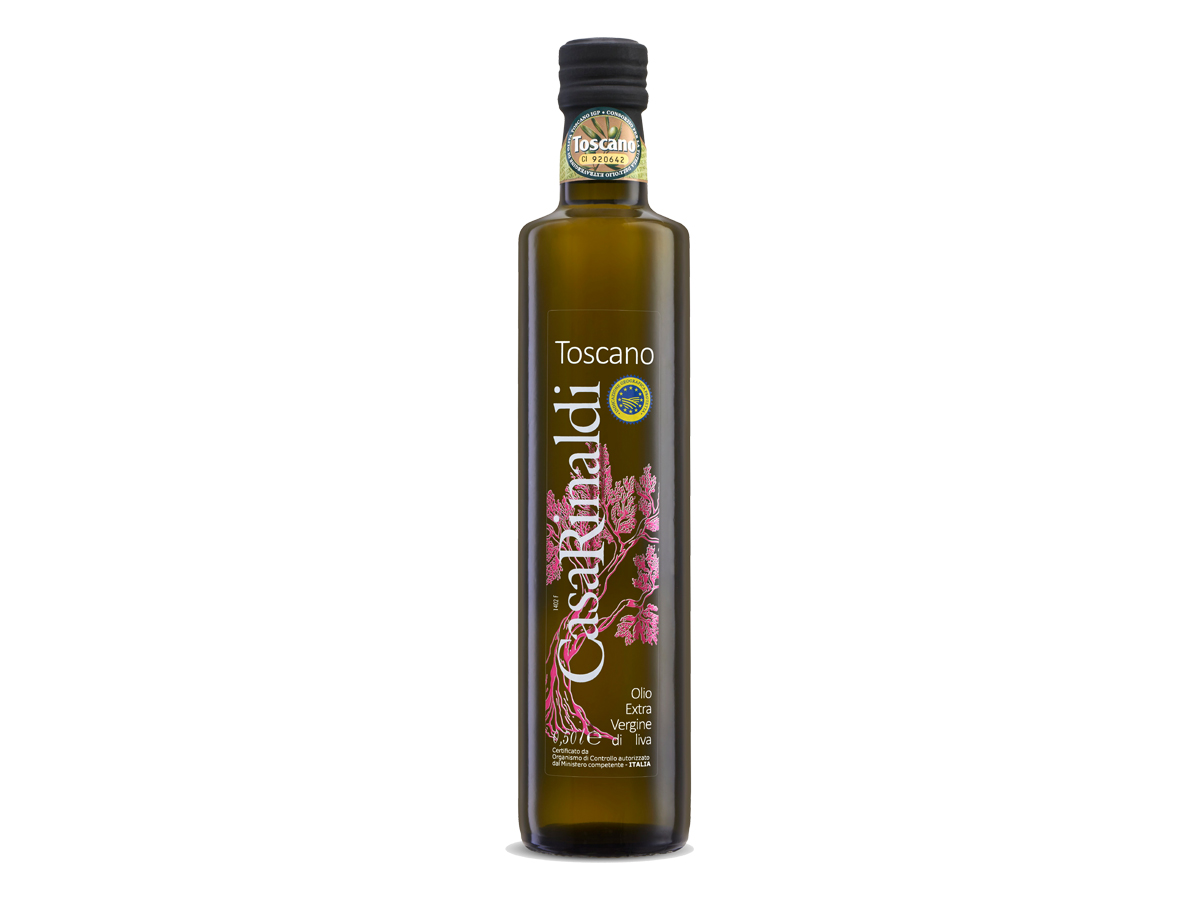 Un olio EVO IGP ottenuto dalle varietà di olive toscane Moraiolo, Leccino e Frantoio. Alla vista si presenta di una tinta tra il giallo e il verde, mentre il suo aroma è deciso, con sentori di carciofo, altri frutti maturi e ortaggi a foglia verde. All’assaggio, l’EVO Toscano IGP di Casa Rinaldi presenta un sapore fruttato molto marcato, ideale per accompagnare alla perfezione piatti tipici toscani come la Fiorentina.