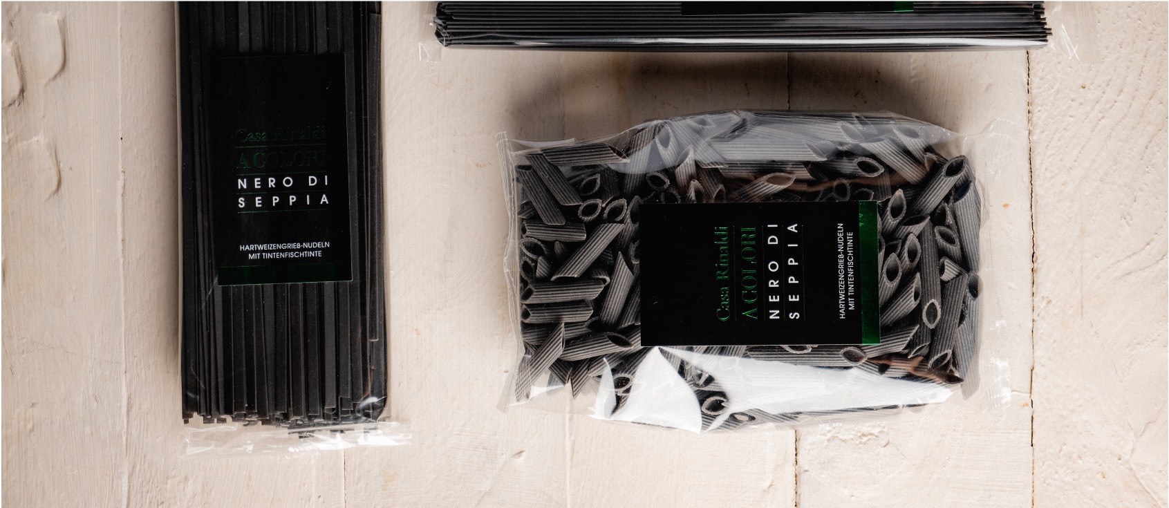 La nostra pasta al nero di seppia rappresenta la tradizione, l’esperienza e la passione italiana. Il grano alla base, selezionato accuratamente, permette di ottenere un prodotto di alta qualità, corposo, che rimane facilmente “al dente” e trattiene molto bene i condimenti. In più, l’aggiunta del nero di seppia dona alla pasta un bel colore nero e un retrogusto sottile e gradevole.