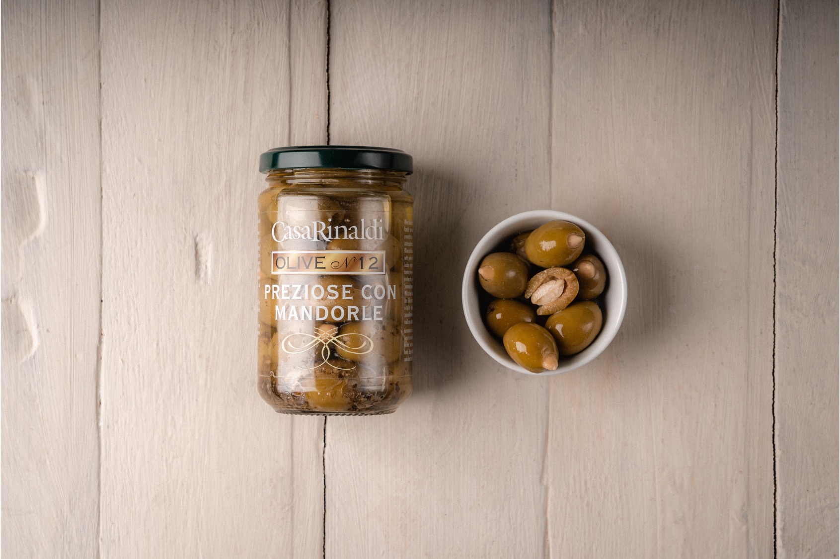 La ricetta di base di queste olive è di origine Calabrese; questa è stata opportunamente modificata da Casa Rinaldi, trasformando il prodotto finale in qualcosa di unico nel suo genere.