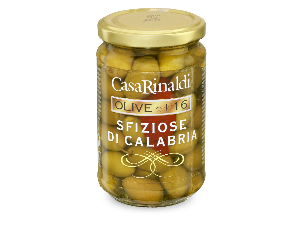 La ricetta di base di queste olive è di origine Calabrese; questa è stata opportunamente modificata da Casa Rinaldi, trasformando il prodotto finale in qualcosa di unico nel suo genere.