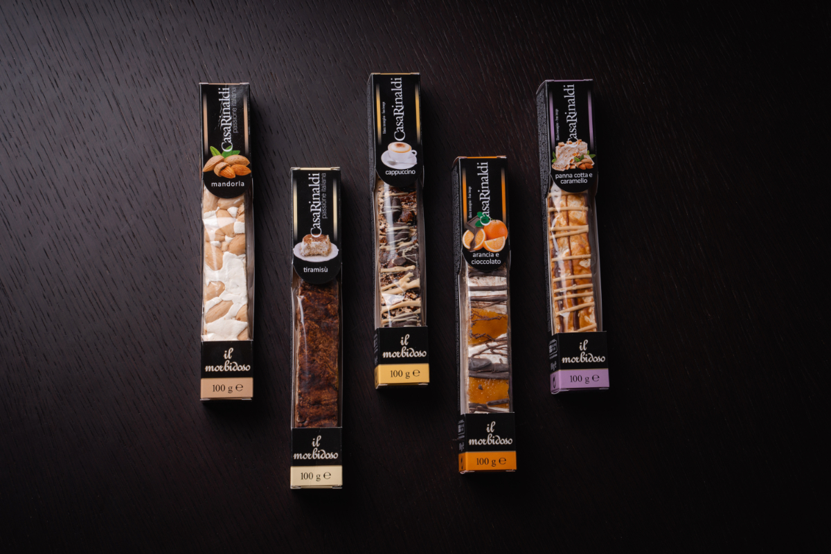 Le varianti di torrone morbido di Casa Rinaldi sono così tante, da poter soddisfare i gusti di tutti. Gli amanti della frutta, del cioccolato o della frutta secca, o perché no di sapori più complessi: dal tiramisù alla panna cotta, dal rhum al limoncello. Il torrone è ideale a fine pasto e in accompagnamento al caffè.