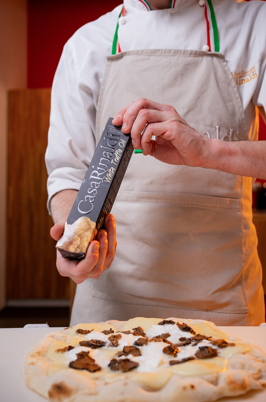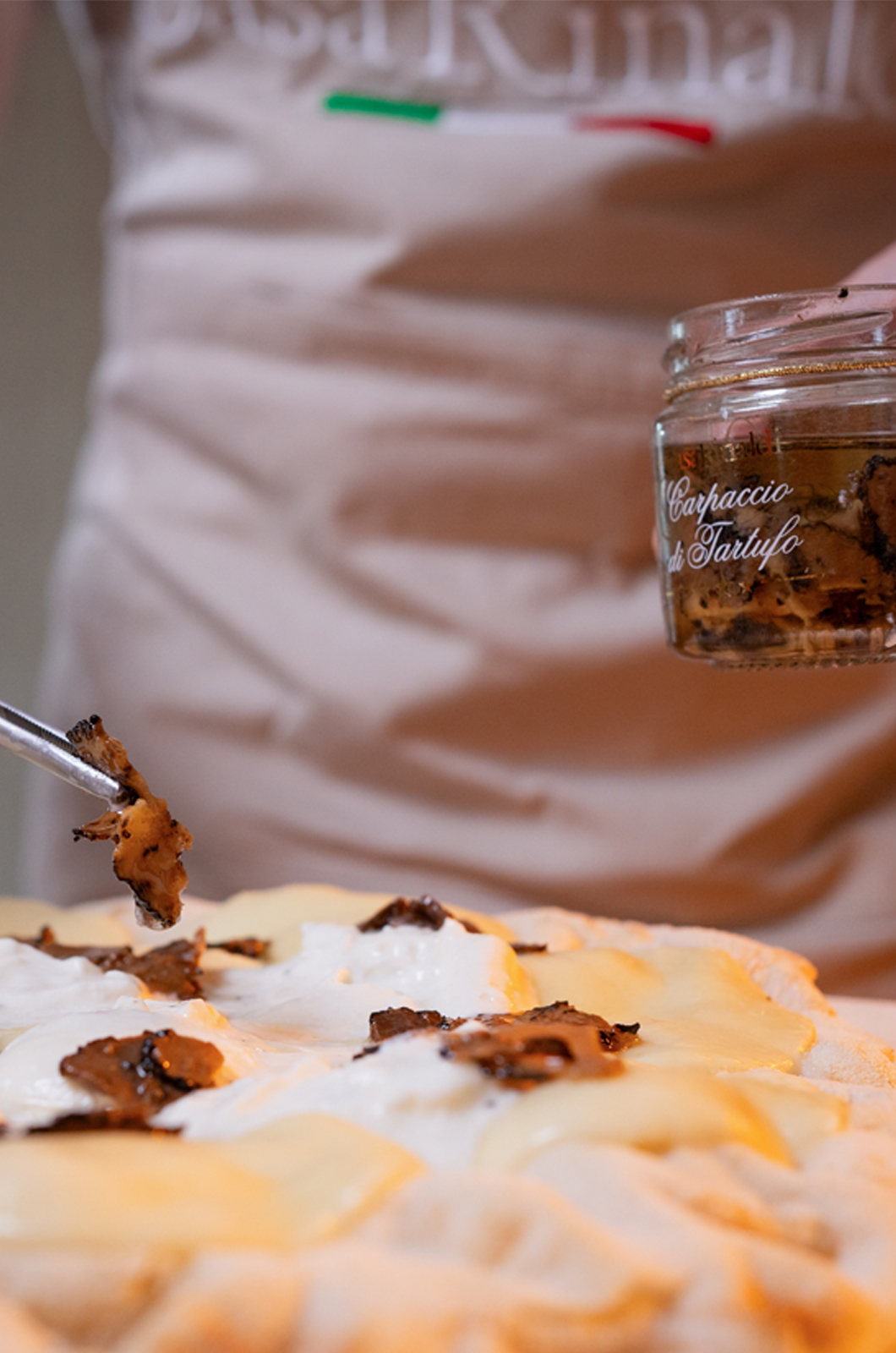 La nostra pizza al tartufo è preparata con ingredienti 100% Casa Rinaldi.