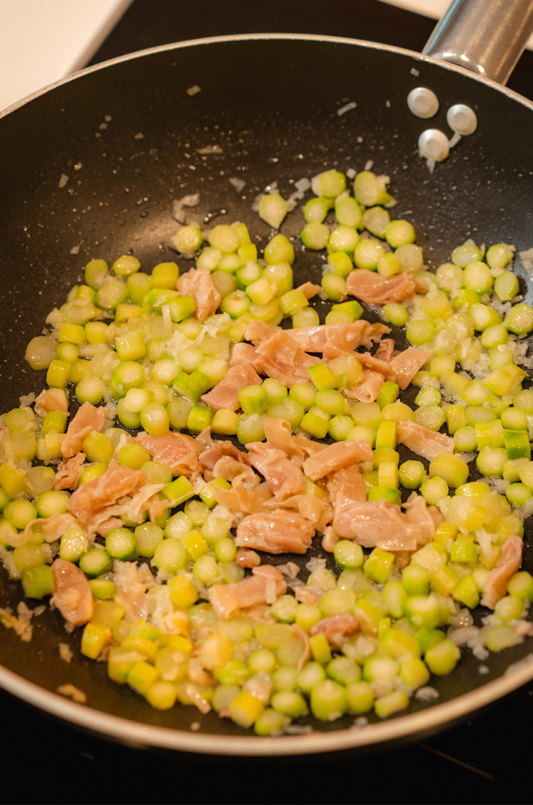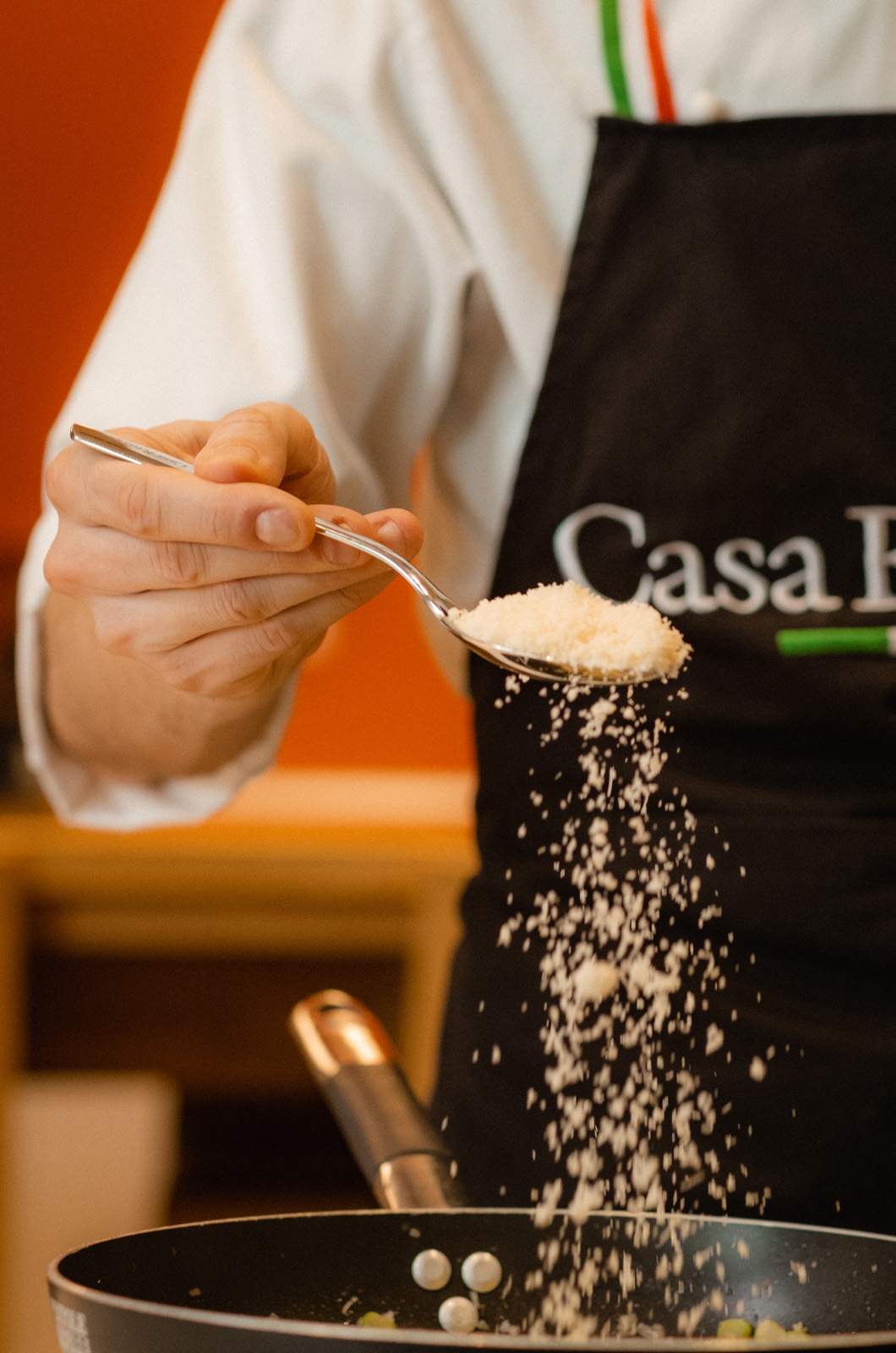 Terminare la cottura in padella aggiungendo il Parmigiano Reggiano grattugiato e mantecando il tutto.