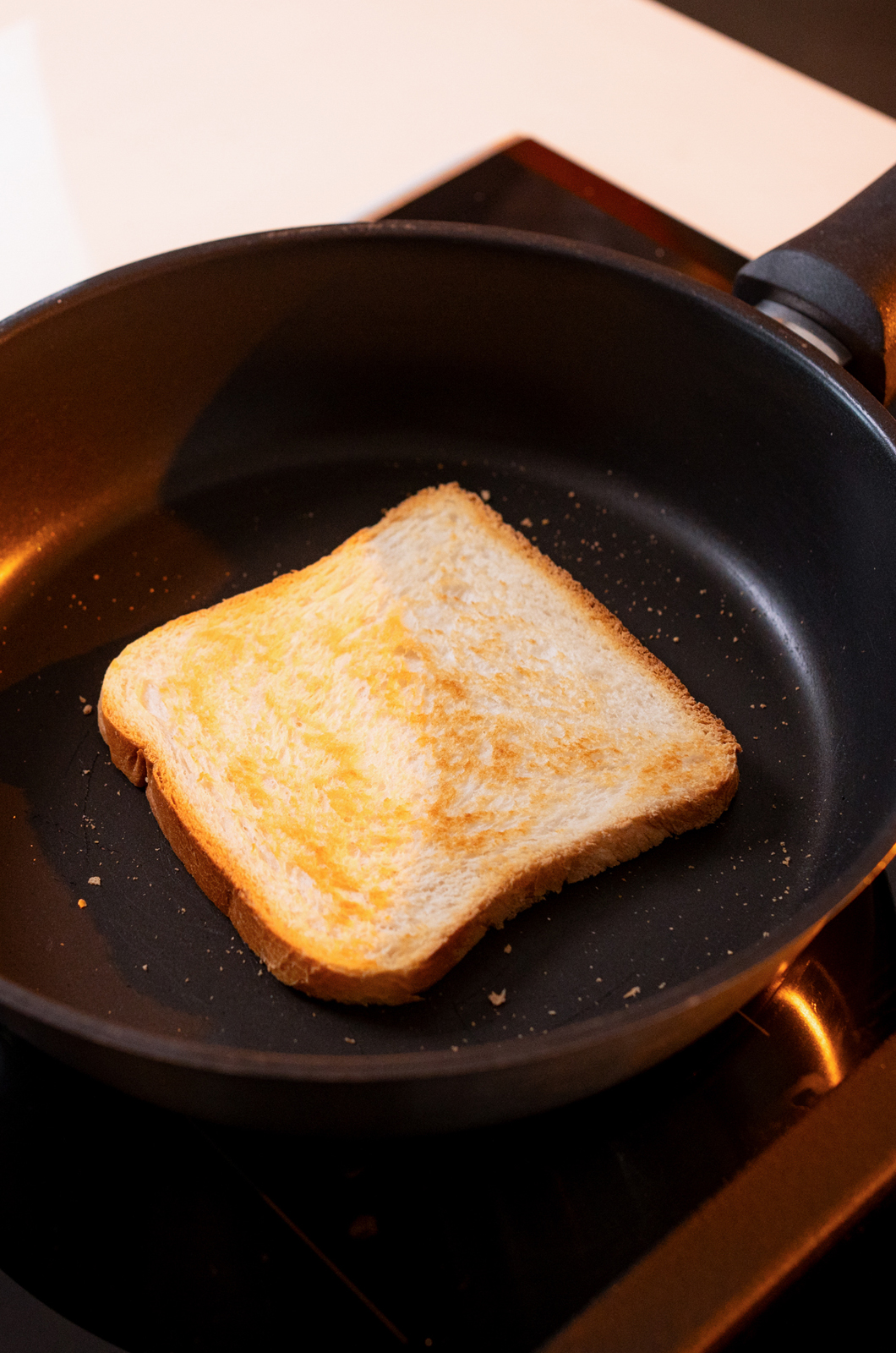 Tostare bene il pane da entrambi i lati ed eliminare la crosta.