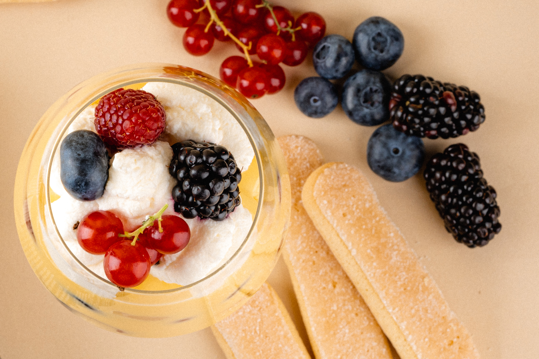 Iniziate con uno strato di savoiardi, aggiungete la crema pasticcera e poi alcuni frutti di bosco. Ripetere gli strati fino a riempire il bicchiere.